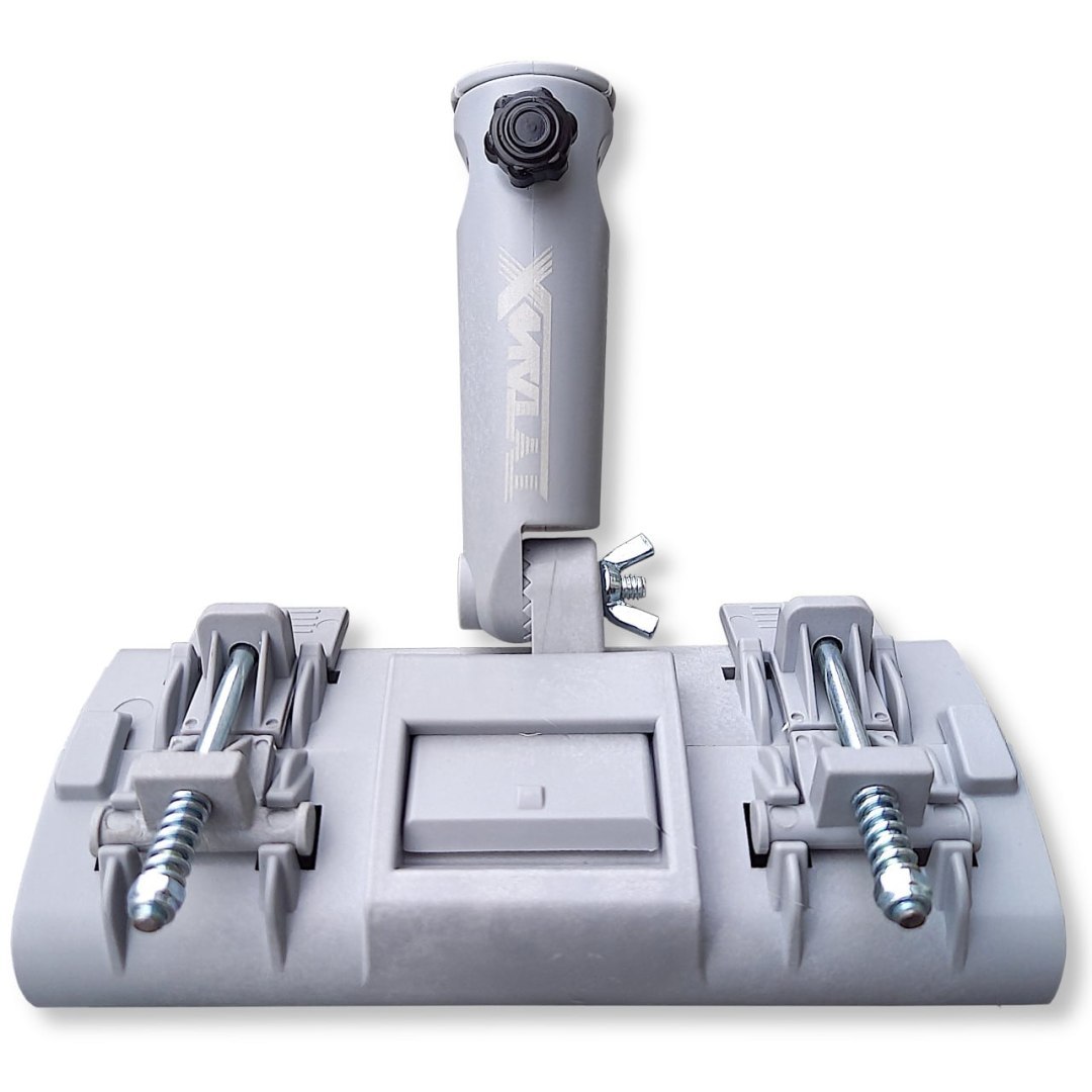 Korpus uchwytu został wykonany z poliamidu wzmocnionego włóknem szklanym, co przekłada się na wysoką odporność mechaniczną i trwałość elementu. Nóż do gładzi osadzany jest w adapterze za pomocą dwóch dedykowanych klipsów, natomiast precyzyjną regulację siły docisku zapewniają dodatkowe śruby, które jednocześnie umożliwiają szybki montaż oraz demontaż narzędzia. Konstrukcja adaptera pozwala na regulację kąta nachylenia podczas pracy. Uniwersalna końcówka montażowa umożliwia współpracę z kijami teleskopowymi wyposażonymi w gwint, system zatrzaskowy oraz końcówkę stożkową wciskaną. Dodatkowa śruba stabilizująca skutecznie zabezpiecza trzpień przed przypadkowym wysunięciem.